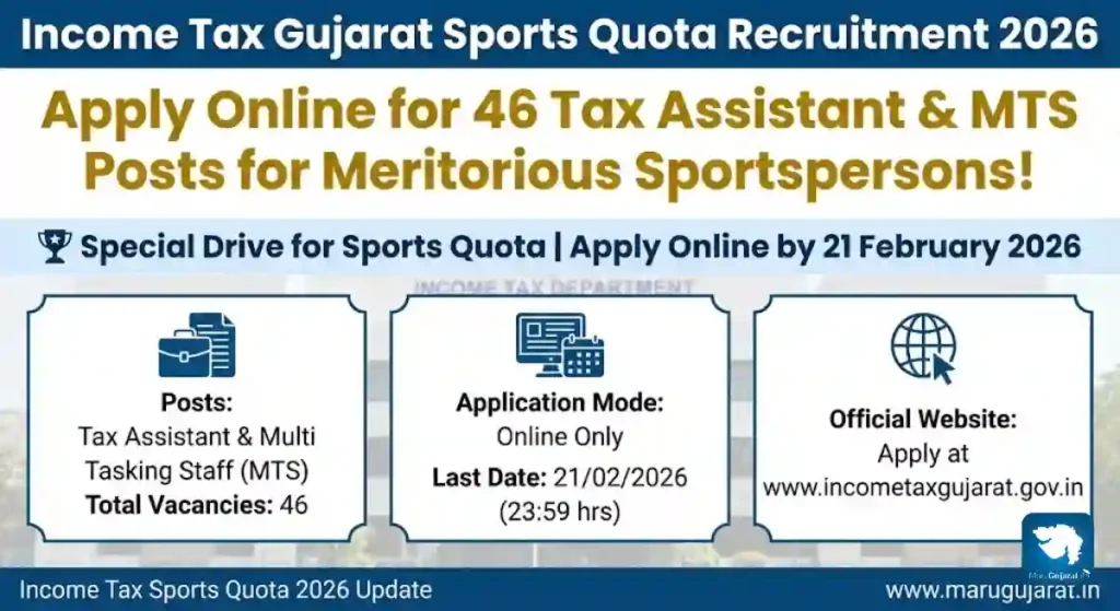 The Office of the Principal Chief Commissioner of Income Tax, Gujarat has officially released the Income Tax Gujarat Recruitment 2026 notification under the Sports Quota. This recruitment drive offers a great opportunity for talented sportspersons to secure a Central Government job in Gujarat.
