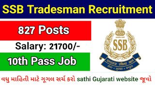 The Sashastra Seema Bal has released the short notification for Tradesman recruitment. This recruitment will be conducted to fill 827 posts in different trades.